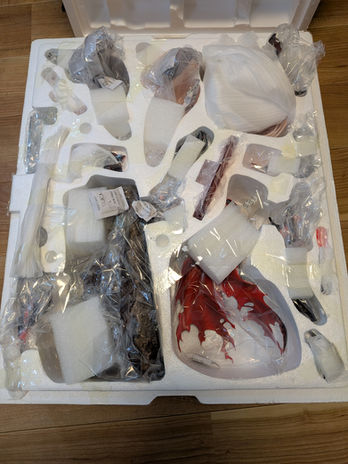 梱包サイズは製品により大きく異なります。小型であれば一般的なフィギュアより少し大きい程度のサイズですが、大型製品の場合は人が入れるほどの大きさとなり、家電に匹敵する重量になることもございます。これは主に素材として、軽量な樹脂ではなく、ポリストーンなどの重量のある材料が使用されることが多いためです。